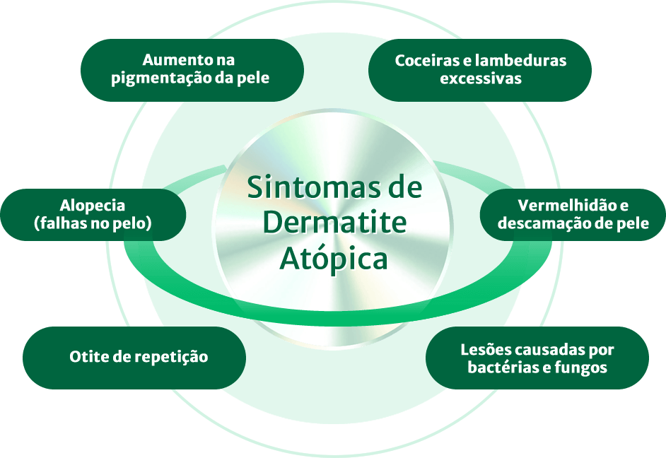 É uma doença autoimune, isto é, uma doença onde o sistema imunológico ataca o seu próprio corpo. Infelizmente é uma enfermidade que não possui cura apenas controle. Apesar de ser uma doença autoimune e de caráter genético, fatores ambientais como ácaros, pólen, poeira doméstica, produtos de limpeza, dentre outros, podem agravar a doença. O sintoma mais frequente relatado pelos tutores é a coceira e lambedura de maneira intensa, porém outras alterações também são observadas.