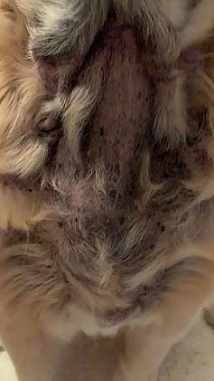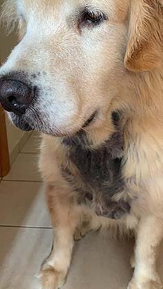 “Merlin está ótimo, nossa muito melhor! Diminuiu muito o prurido, quase não coça mais.”